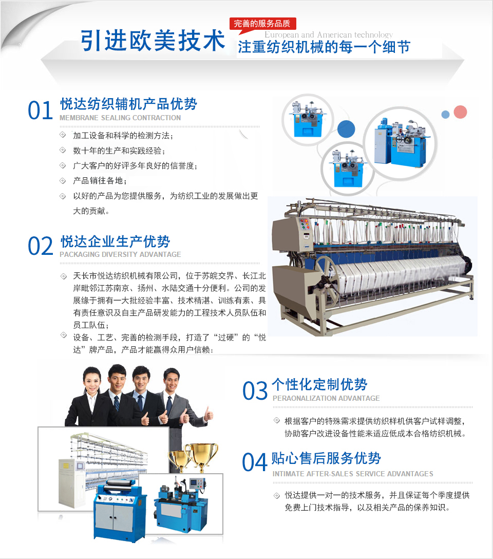 公司是主要生產(chǎn)紡織平車(chē)安裝工具、紡部輔件及配件綜合性企業(yè)。已有二十多年的生產(chǎn)歷史,在激烈的市場(chǎng)競(jìng)爭(zhēng)中始終保持優(yōu)良的質(zhì)量、優(yōu)化的價(jià)格、齊全的品種優(yōu)勢(shì)。產(chǎn)品暢銷(xiāo)全國(guó)各地,深受新老客戶的好評(píng)。